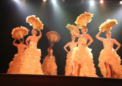 Pour rêver le temps d’un show cabaret à travers les standards de la Revue tel le cultissime French-cancan et sa ville lumière Paris, l’incontournable Edith Piaf, la mythique Dalida, Zizi Jeanmaire et son truc en plumes, la beauté de My fair Lady ou encore les célèbres cabarets comme Le Lido, le Moulin-Rouge ou le Crazy Horse. Un vent de modernité s’élèvera grâce aux divines Beyoncé, Adèle ou Céline Dion, sans oublier le charismatique Stromae. Un spectacle unique et magique !